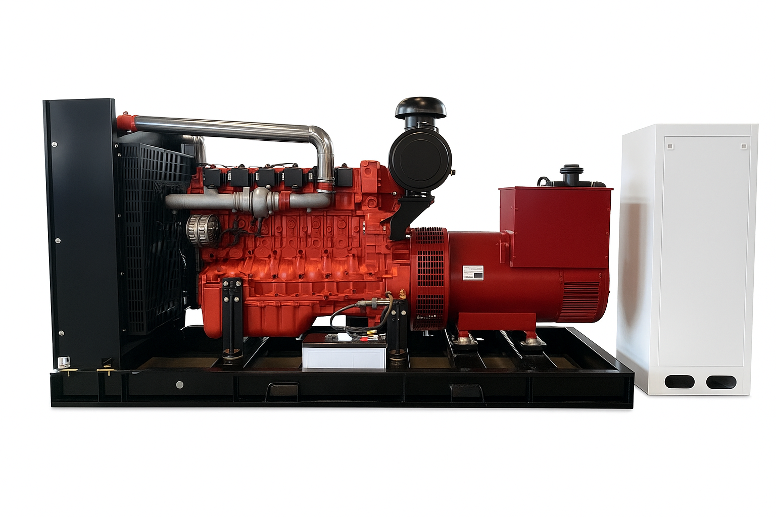The generator is equipped with a brushless, full-copper alternator, providing consistent and high-quality power output with low maintenance. A pre-turbocharged, premixed air-fuel intake system, combined with turbocharging and intercooling, improves combustion efficiency and reduces emissions.